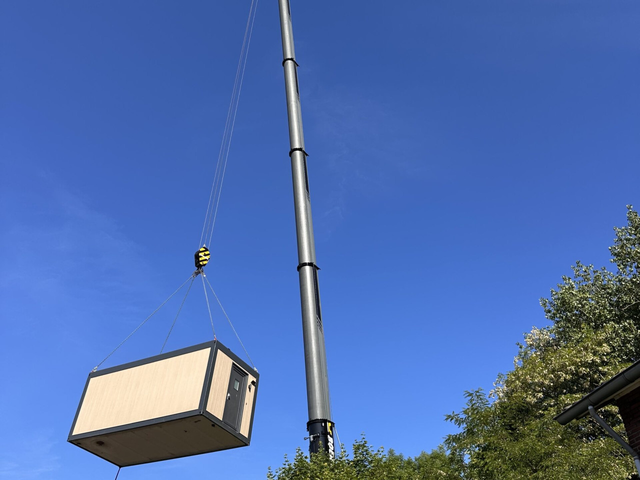 Een van onze compacte units uit de BASIC-line is opnieuw ingezet. De unit werd eerder gebruikt tijdens een evenement in Wageningen, waar een tijdelijk straatje met zes inspiratiewoningen werd gebouwd. Na afloop stond hij opgeslagen in Gouda, in afwachting van een nieuwe plek.