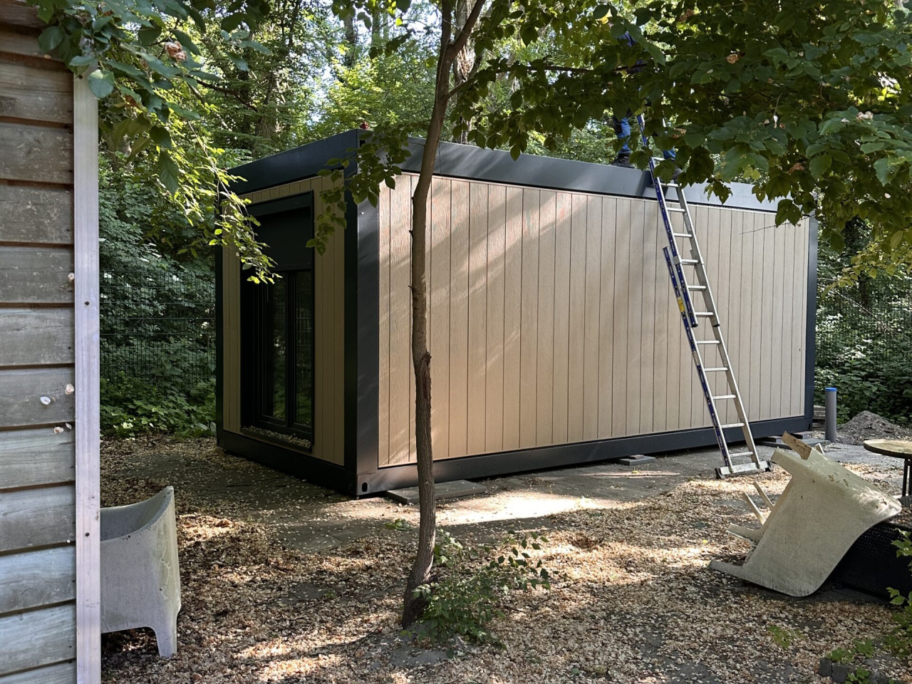 Die plek is nu gevonden. Op 20 mei is de unit in een achtertuin geplaatst als tijdelijke noodwoning, in opdracht van De Tussenvoorziening. Zo laten we zien hoe hergebruik van onze units snel uitkomst kan bieden.