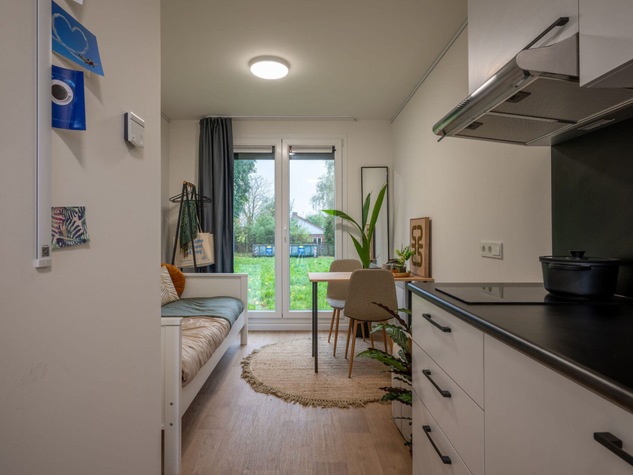 Onze compacte studio is populair bij mensen die snel een eigen plek nodig hebben. We leveren hem gestoffeerd op, zodat je direct kunt wonen. Of je nu spoedzoeker bent of student, je thuis staat er binnen weken.